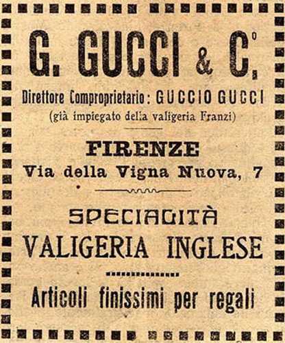 Гуччио ГуччиОн заметил, что богатые постояльцы всегда приезжали с качественными дорогими чемоданами, благодаря которым сразу же был понятен социальный статус человека и его финансовое состояние. Работая в Лондоне молодому человеку удалось накопить 30 тысяч лир, которые он решил вложить в новый бизнес.