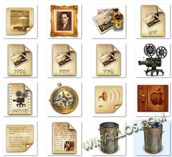 Оригинальные иконки в стиле винтаж очень креативно смотрятся на рабочем столе.