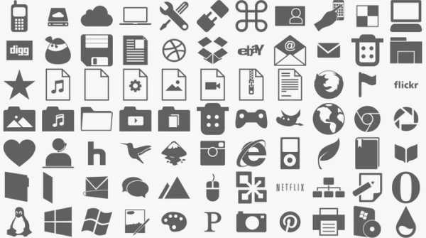 Большой набор иконок в стиле минимализма в светлых и серых тонах сделает Ваш компьютер уникальным.
