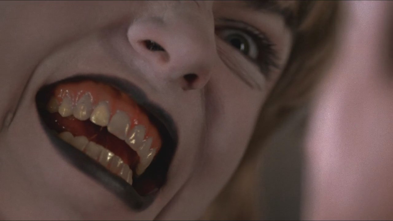 Вернёмся к последним дням Лоры Палмер. Как вы помните, я называл три составляющие сериала Твин Пикс. Три жанровых слоя — детектив, мелодрама и мистика. В "Огонь, иди со мной" детектив заменили на "фильм ужасов". Причём довольно примитивный, со скримерами и всякой жутью. При первом скримере я даже вздрогнул, но скорее от неожиданности, чем от испуга.