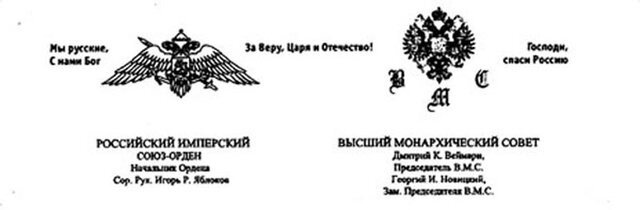 Если в будущем Высшему Монархическому Совету суждено быть возрожденным, – то только на отмеченной выше легитимно-соборной и церковной основе. Не соответствующие этому условию новые члены ВМС, которых Д.К. Веймарн сейчас собирается неуставно вводить туда в виде "ротации" (а многим, конечно, будет лестно туда войти), – должны сознавать все вышесказанное, для чего я делаю это обращение открытым.