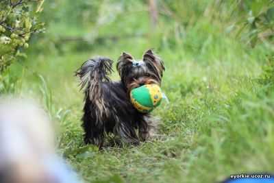 Прогулки. Йорки не нуждаются в длительных прогулках и могут спокойно сидеть дома, развлекаться в четырех стенах. Будучи, как правило, уравновешенными, они спокойно перенесут прогулки в городе на руках или в сумке. С йорками пускают во многие кафе, и мы часто видим хозяев вместе с йорками даже на рабочем месте (один мой приятель выбирал себе щенка как раз для этих целей!).