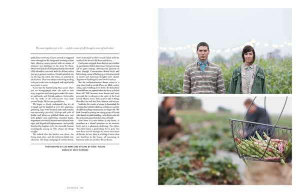 Изначально вообще-то Kinfolk о еде собирался писать. У истоков стоят Натан и Кейти Уилльямс, которые 5 лет назад, умаявшись пахать ниву издательского бизнеса, решили сделать журнал о том, как им нравится быть семьей и устраивать посиделки с корешами. Но, как это обычно и бывает на дружеских обедах, еда превратилась в предлог собраться и потрепаться обо всем на свете – о выращивании лаванды на подоконнике, организации своего магазина плюшек, походах с детьми и без, семье, друзьях и жизни вообще. За эти годы журнал разросся и расцвел, обзавелся фотоисториями, эссе, интервью, рецептами и путеводителями.