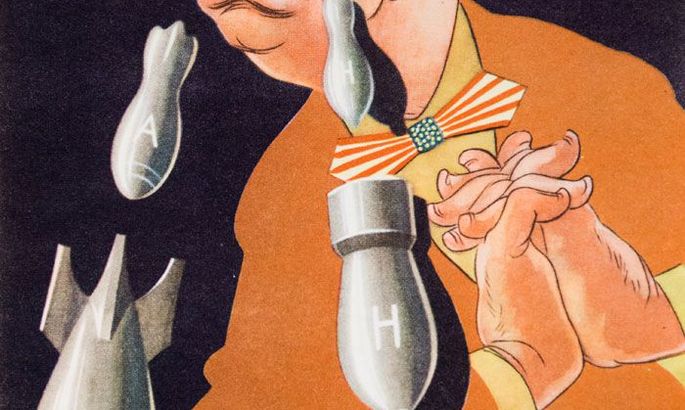 Конечно, это не означает, что в журнале не печатали рутинные карикатуры, которые четко соблюдали предписанные сверху инструкции. Так, одним из любимых мотивов был связывающий голубя мира и сеющий смерть палач Дядя Сэм, который дружит с богом войны Марсом. У него отовсюду торчат пачки долларов, ракеты, атомные и водородные бомбы. И все это на фоне апокалиптических картин горящего земного шара, над которым вырос гриб ядерного взрыва.