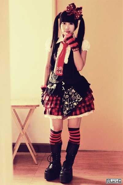 Панк Лолита – это стиль сочетающий в себе элементы Лолиты и Западной панк культуры. Традиционные панк элементы – это цепи, шипы, разорванная одежда и пр. Но главное отличие Панк Лолиты от традиционного панка – милый образ. Для Панк Лолиты присущи такие элементы как юбка-колокол с объемной футболкой, ошейники, тяжелая обувь на платформе, принт-клетка.