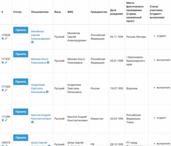 К профилям участников привязаны имейлы, так что вы можете делать рассылку прямо со страницы просмотра заявок.
