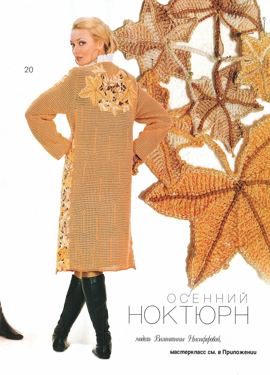 Номер понравится тем модницам, которые любят носить такие вещи как платья, сарафаны, юбки, жакеты и, конечно же, чудесные аксессуары к эксклюзивным моделям одежды.— «Осенняя» туника— Кардиган с отделкой из листьев— Шапочка-труба— Платье с широким поясом— Шапочки— Ажурный кардиган-пальто— Шапка-хомут— Платье с цветами, спицы— Пальто с воротником из цветов и шляпка— Платье из Брюггских и Ирландских кружеви тд. Кол-во страниц: 100