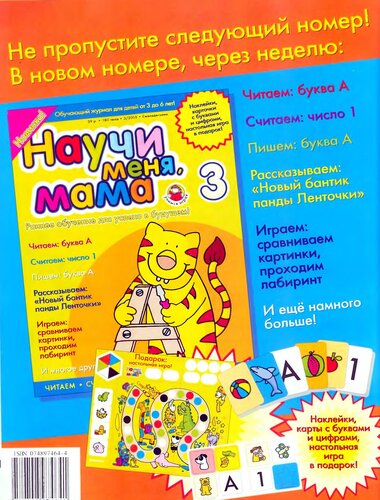 «Научи меня, мама» - первый в России обучающий журнал для детей от 3 до 6 лет. С помощью нового журнала мама и папа легко научат малыша читать, писать и считать, а еще - рассказывать истории, вырезать картинки, отгадывать загадки и рисовать. В каждом выпуске увлекательного партворка для детей и их родителей - карточки, наклейки, развивающие игры и другие интересные и забавные задания.