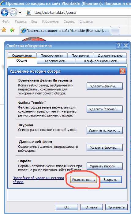 1. Если вы используете IE7, в меню «Сервис» выбирайте опцию «Удалить журнал » и нажмите «Удалить историю» в разделе «Журнал». В этом окне вы можете удалить куки, временные файлы интернета и прочие данные, сделанные при посещении разных веб-узлов.