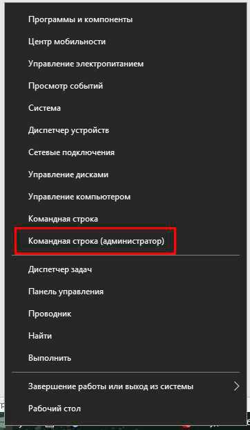 1. Откройте командную строку от имени администратора: один из способов - нажать на меню "Пуск" правой клавишей мыши и выбрать "Командная строка (администратор)" из открывшегося меню.