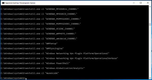 Эта команда очищает журнал полностью, впрочем, с помощью командной строки можно также можно очистить конкретный журнал.