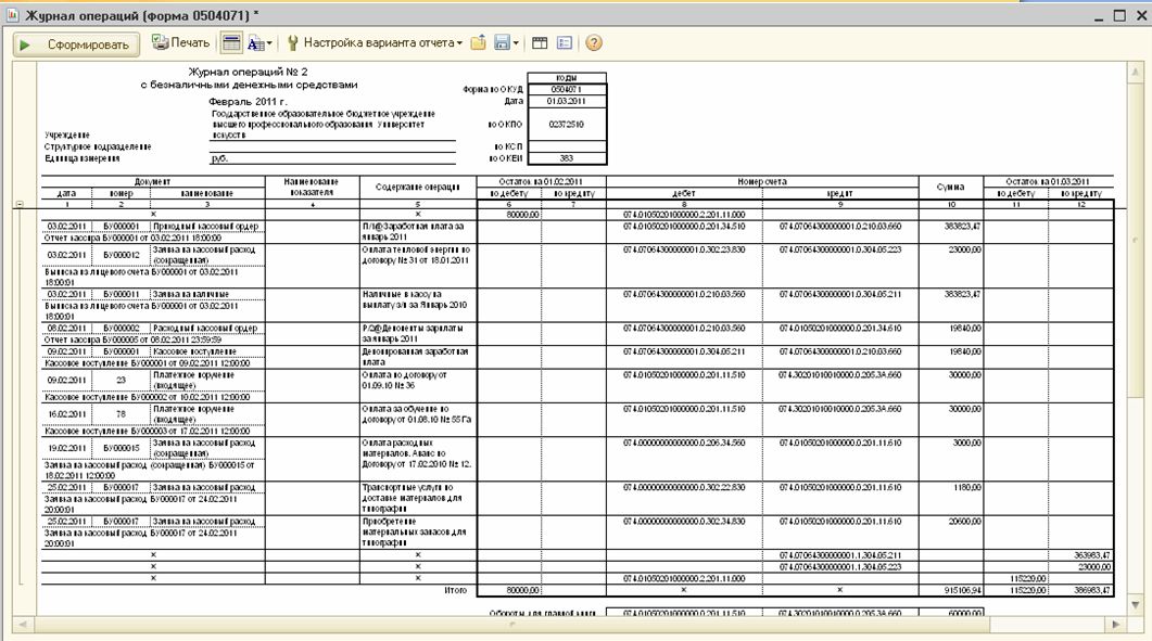 0504071 журнал операций образец заполнения. Журнал операций 3 пример заполнения