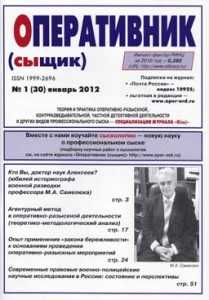 Мастера теории и практики сыскаПоздравляем юбиляра! К 70-летию со дня рождения Леонида Владимировича ШебаршинаВ.М. Атмажитов, В.Г. Бобров. О Владимире Андреевиче Лукашове (1925—2000). К 80-летию со дня рожденияО.А. Вагин, К.К. Горяинов, А.П. Исиченко. Памяти ученого — теоретика оперативно-розыскной деятельности. К 80-летию со дня рождения Владимира Андреевича ЛукашоваА.Ю. Шумилов. О Кирилле Прокофьевиче Орловском (1895—1968). К 110-й годовщине со дня рожденияИнформация к размышлениюН.П. Водько, А.Ю. Шумилов. К организации Департамента уголовного розыска МВД России: краткая историческая справкаХронологический указатель национальных основных законодательных и иных открытых нормативных правовых актов, а также других правовых источников в области контрразведывательной деятельности (1991—2004 гг.)Коротко о важномЮридические казусы в сыскеО правильности написания «оперативно-розыскной» или «оперативно-разыскной», или Для чего правительство исправляет законодателя?А.Ю. Шумилов. О докторах наук в области сыска в современной России: вносим уточнения в переченьВ смежных областях научных знаний и практикиА.В. Чуркин. Соотношение уголовно-процессуального и оперативно-розыскного опознанияН.А. Громов, В.А. Колдин, А.Н. Гущин. Теоретические и практические аспекты представления оперативными подразделениями видео- и аудиозаписи, кино- и фотосъемки дознавателю, следователю, прокурору и в суд