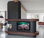 Индустриальная стилистика лофта создает подходящие условия для внедрения технических инноваций. В таких интерьерах гармонично смотрятся последние новинки ведущих производителей каминов и печей. Абсолютно безопасные типы открытых топок, новые экологически чистые виды топлива, современные конструкции с возможностью вращения и изменения положения камина в пространстве, модели с дистанционным управлением — все эти достижения прогресса создают максимум комфорта в повседневной жизни.