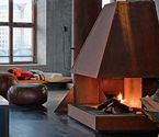 Выбор камина или печи для современных интерьеров в стиле лофт зависит прежде всего от характеристик самого помещения. Если лофт — это переоборудованное одноэтажное промышленное здание, выбор камина ограничен только требованиями противопожарной безопасности. В таких интерьерах можно устанавливать модели с большим весом, в том числе и традиционные дровяные камины с дымоходами. Камины, встроенные в перегородки, помогают делить лофт на разные функциональные зоны, а центральные модели, в том числе и подвесные, подчиняют себе все окружающее пространство. Для небольших помещений, расположенных на верхних этажах зданий, скорее подойдут легкие, компактные каминные печи на газовом и пеллетном топливе.