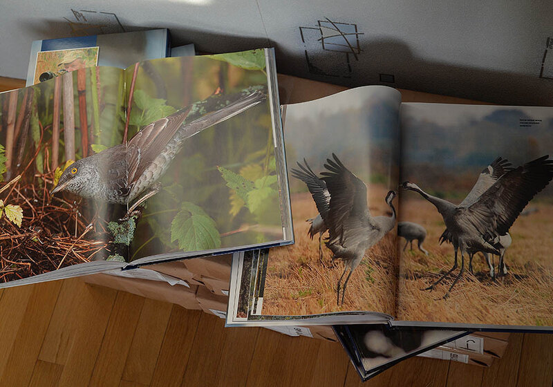 Мне было очень приятно работать с верстальщицей Галиной Кузиной. Она постаралась вставить в очерк о птице максимум снимков. Правда, всё же многие из мною выбранных изначально фото оказались не напечатаны. Всё из-за того, что некоторые тексты были слишком коротки, и фотографии без описания сделали бы эту книгу больше похожей на фотоальбом. Я же стремился, чтобы текст и фотографии дополняли друг друга. Хотел, чтобы читатель не просто рассматривал картинки, но и узнал о птице что-то интересное. Поэтому фотографии в каждый очерк вставлялись такие, чтобы наиболее полно представить птицу.