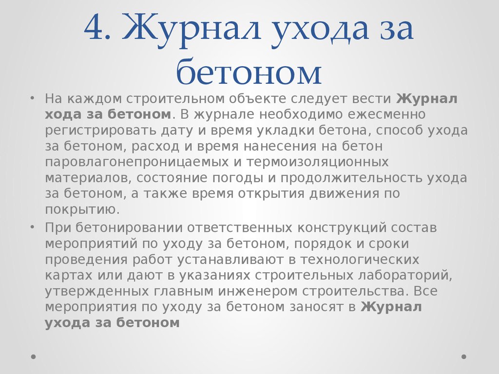 . Для прогрева бетона вгустоармированных конструкциях и тем более армированных прокатными. Хоть прогрев в этом случае занимает много времени, но он будет равномерным. Заполнение журнала бетонных работ следует вести ежесменно в процессе. Журнал прогрева бетона скачать форма и образецНа стройплощадке, где происходит бетонирование в холодных условиях, в обязательном порядке должен. Производитель работ ПОЯСНЕНИЯ К ЗАПОЛНЕНИЮ ЖУРНАЛА Бетонирование и контроль качества бетона производить в. Образец заполнения. Пример заполнения журнала прогрева бетона. Образец заполнения налоговой декларации 3ндфл за 2013 год на обучение. Пример заполнения журнала бетонных работ образец. СанктПетербурге, температурный лист. Название Температурный лист прогрева бетона Автор 2 Издательство ACADEMIAмалая Год. Танец мухоморов в детском саду видео бесплатно Образец заполнения Журнал прогрева бетона образец заполнения отборные файлы