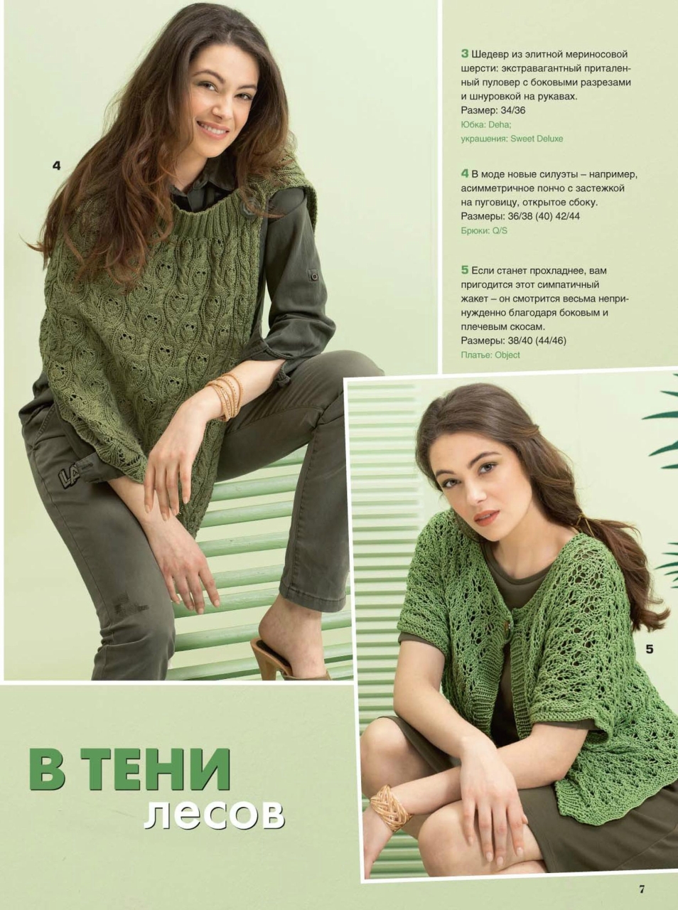Журнал «Сабрина» №7 2017 — популярный журнал по вязанию модных женских моделей крючком и спицами. На страницах журнала представлены разнообразные модели для женщин всех возрастов, имеющих разный опыт вязания. Здесь вы найдете множество идей, как выглядеть модно и эффектно без особых затрат. Все модели представлены в нескольких размерах, поэтому женщины могут сами выбрать ту модель, которая подходит им наиболее удачно и соответствует их индивидуальному стилю. В данном номере 32 модели трикотажной одежды для женщин для лета и отпуска, связанных спицами и крючком — ажурные топы, джемперы, пуловеры, жакеты, кардиганы, платья и многое другое.