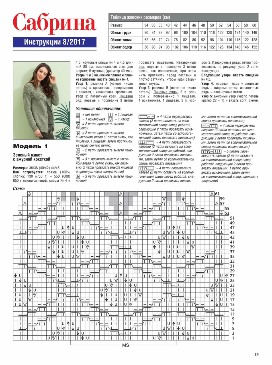 Журнал Сабрина номер 1 — 2018 — журнал полностью, со схемами и описанием, бесплатно и без скачивания. Журнал Сабрина на русском языке — популярный журнал по вязанию. На его страницах представлены разнообразные модели для женщин всех возрастов, имеющих разный опыт вязания. Здесь вы найдете множество идей, как выглядеть модно и эффектно без особых затрат. Все модели представлены в нескольких размерах, поэтому женщины могут сами выбрать ту модель, которая подходит им наиболее удачно и соответствует их индивидуальному стилю.