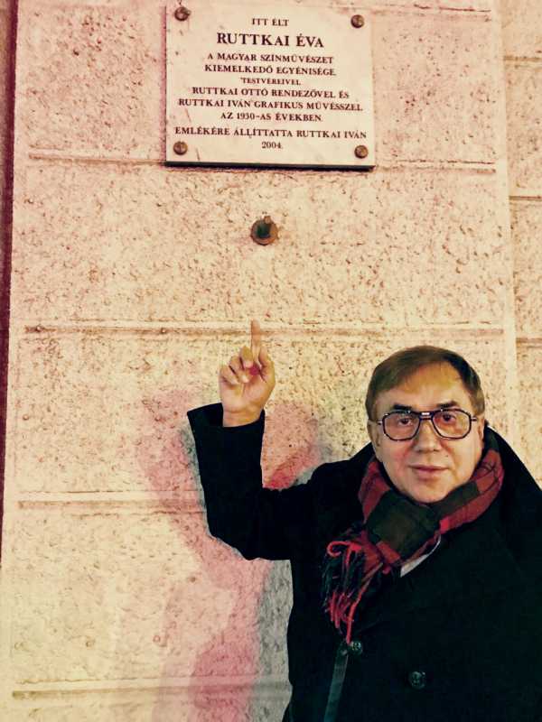 А сфотографировался я в Будапеште около дома, где с 1930 года Ева жила со своими двумя братьями: Отто и Иваном. Вообще детей в семье было шестеро, но родители Евы сильно бедствовали и из шестерых выжили только трое, сестра и два брата. С юных лет мальчики выступали в детском театре, зарабатывая на жизнь, а Ева присоединилась к братьям, когда ей было всего два года. На фото она с братом Иваном, именно он повесил мемориальную доску на дом в память об их детстве.