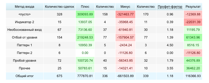 Торговля каждого человека абсолютно индивидуальна, и совершенно не известно, что конкретно у вас окажется сильной стороной, а что слабой. Как раз для того, чтобы это выяснить, в сервисе есть большое количество различных аналитических инструментов, позволяющих сортировать сделки по целому ряду параметров (по времени, по дням недели, по инструментам и секторам) и видеть различные зависимости (например, зависимость результата от стиля торговли, от проторгованного объема, от способа входа и выхода из позиции, зависимость результата от стратегии, от направления сделки, от размера позиции и т.д).