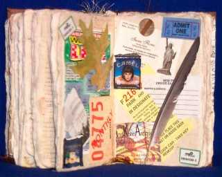 Раз уже возникло слово "книга", надо упомянуть и такое направление, как Altered Books - измененные книги. Это художественный альбом-журнал-инсталляция, сделанный на основе настоящей старой ненужной книги. С книгой можно поступать так же как с альбомом - красить страницы целиком и заклеивать разными коллажами или рисовать. А можно делать и физические трансформации - сгибать страницы, складывать в конверты, прорезать окна, арки и туннели. Напечатанный текст уже дает фактуру странице - он просвечивает сквозь краску, может оставаться незакрашенным вовсе, может просвечивать отдельными словами и фразами.
