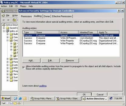 Аудит Active Directory: цели, недостатки штатной системы аудита и пути их преодоления. Журнал событий контроллера домена