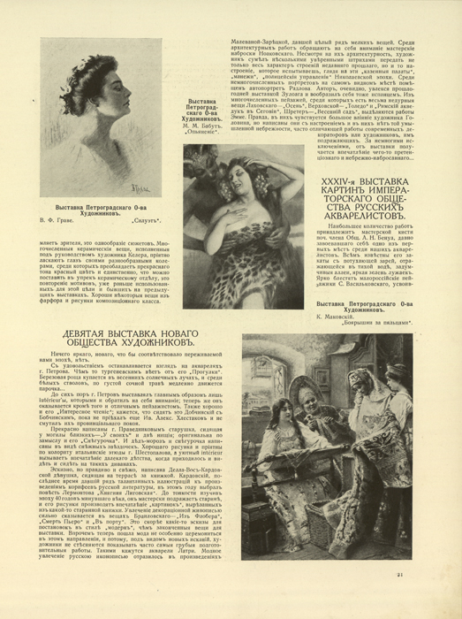 - Русские художники-декораторы (А. Бенуа, И. Судейкин, Л. Бакст) // № 57, 1916.