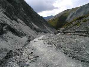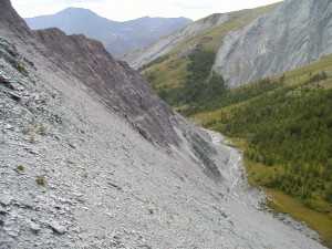 Ну, собственно забравшись на Кара-Тюрек, тут же надо с него скатиться и попасть к Аккемскому озеру, в том месте где оно превращается в реку. Река довольно бурная, лично мне было довольно таки ссыковато на лошади через нее переезжать, так как коня реально сносило. На берегу кстати стоит домик, то ли метеостанция то ли что еще, и живущий там парень может перевести вас через озеро на лодке. Перебираться в любом случае надо, ибо именно на той стороне находится лучшее место для стоянки, откуда можно уже будет делать уже радиальные вылазки для осмотра окрестностей. А именно, встать нужно будет в долине Ярлу, на берегу одноименной реки.