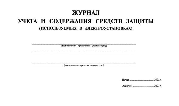 Образец титульного листа журнала учета и содержания средств защиты.Где можно скачать бесплатно журнал учета и содержания средств защиты в электроустановках?