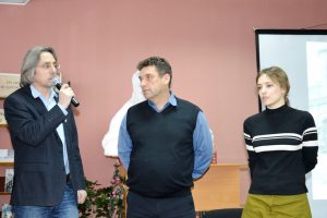 А когда перешли к собственно презентации, Анастасия еще раз взяла в руки гитару – и зазвучали уже ее собственные стихи, посвященные селу Заозерью.