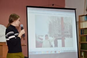 Светлана Юрьевна рассказала о поездке, поздравила участников встречи не только с выходом издания, но и с праздниками – Татьяниным днем и Днем студента. И передала микрофон еще одной постоянной участнице презентаций «Углече Поле» — Анастасии Томиной. Анастасия, тоже, кстати, студентка, свое поздравление сделала музыкальным. Прозвучали стихи Марины Цветаевой «Лебеди», положенные на музыку самой исполнительницей.