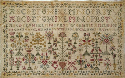 В XVIII веке сэмплеры изменились еще раз. Они по-прежнему играют важную образовательную роль, но при этом приобретают все больше художественных черт. Декоративные элементы становятся все более разнообразными, появляются бордюры, текстовые фрагменты, чаще всего из Библии или книг религиозного содержания, пейзажные зарисовки.