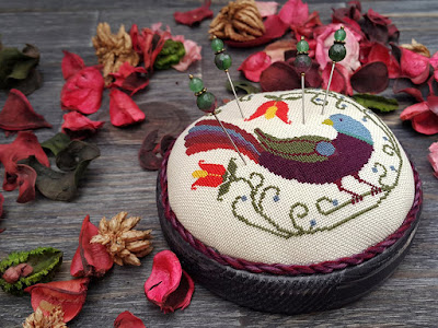 Еще одним проектом, реализованным вместе с Рузанной Гладковой (http://bilberry-forest.blogspot.ru/), я очень горжусь. Это дизайн «Райская птица», оформить который можно в круглую деревянную игольницу (приобрести можно у Рузанны).