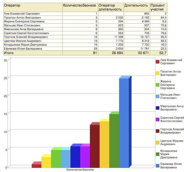 Надо разобраться с распределением нагрузки на операторов?Постройте диаграмму распределения вызовов по сотрудникам.