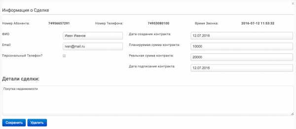 | Информация о сделке по звонку. Ее будет целесообразно заполнить, если речь в звонке идет о какой-либо прибыли