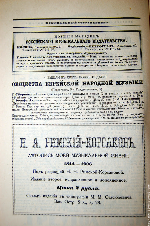 «Музыкальный современник», возглавлявшийся Римским-Корсаковым, был одним из ведущих музыкальных журналов начала XX века. Первостепенное значение он уделял творчеству отечественных композиторов. Выходили отдельные номера журнала, целиком посвященные Скрябину, Танееву, Мусоргскому и другим известным композиторам.