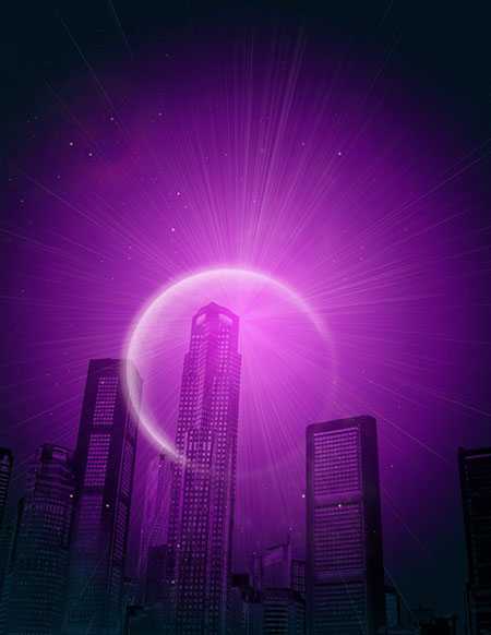 Шаг 3. Открываем изображение Stock illustration: Planet и размещаем над слоем с городом. Мягким большим круглым инструментом Eraser (Ластик) (E) стираем края. Меняем blending mode (режим наложения) на Screen (Осветление).