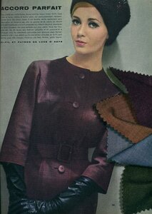 А вот уже конец 60-го года и пошла немного другая тенденция: узкие юбки, короткие жакеты прямого покроя
