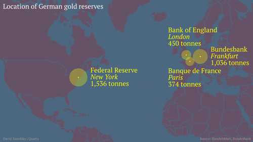 В действительности вопрос должен быть поставлен иначе: почему это длилось так долго, прежде чем наши политики стали действовать? Более чем две трети золотого запаса в Германии оценивается в 137 млрд евро, или $ 183 млрд. и находится за рубежом, хранится в сейфах Нью-Йорка, Парижа и Лондона. Официальная причина такова. Во времена холодной войны золото было передано из Франкфурта в США, Великобританию и Францию, поскольку это было более безопасно в случае советского нападения. Франкфурт находился слишком "близко к железному занавесу".